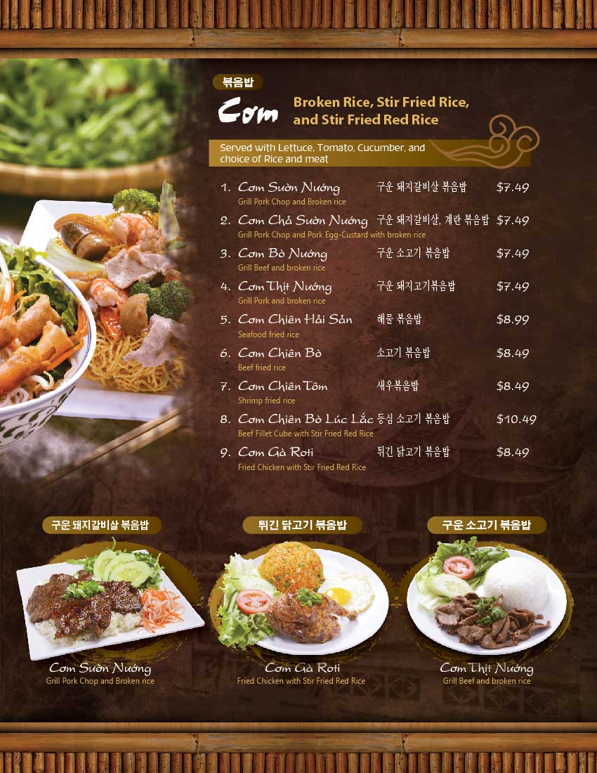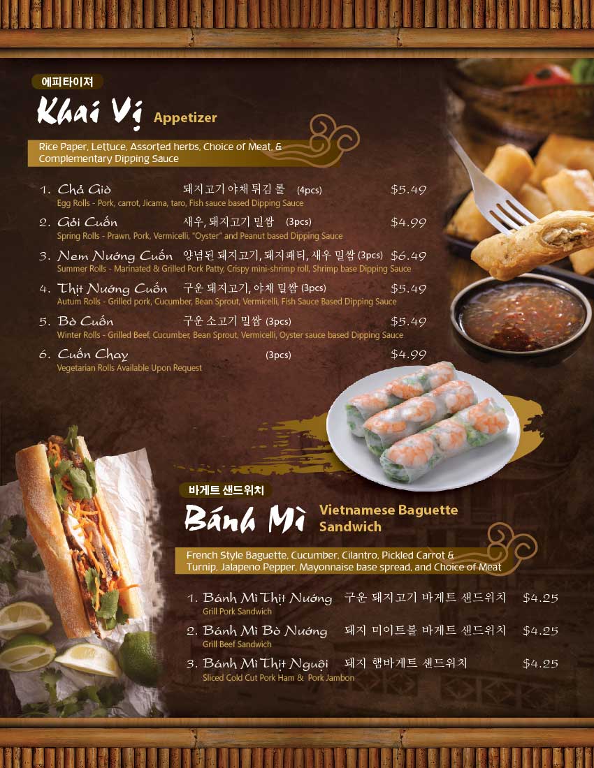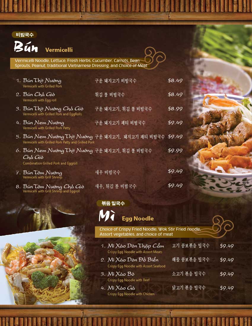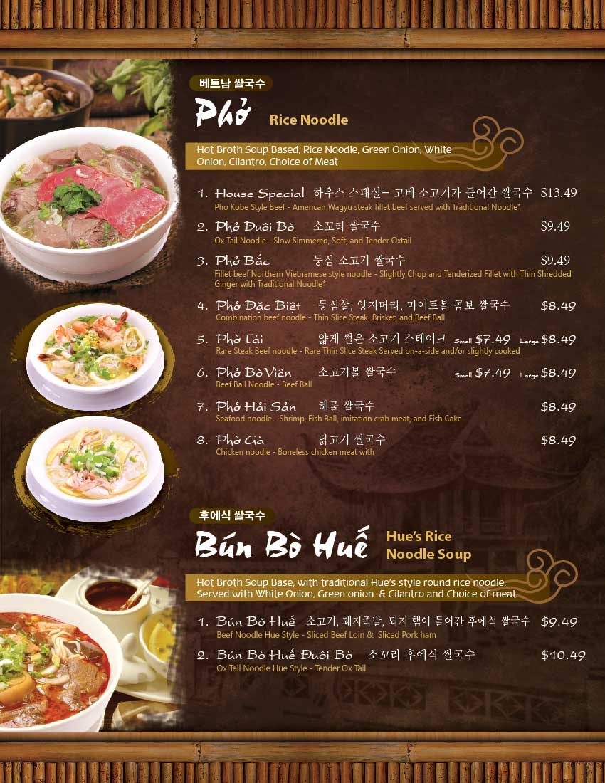 Welcome to Ktown Pho Menu, where every dish promises a taste of authentic Vietnamese flavors right in the heart of Los Angeles. Whether you're craving a steaming bowl of pho with tender slices of beef or a fresh plate of vermicelli noodles, the menu here offers something for everyone. From savory banh mi sandwiches to hearty rice dishes, each option is crafted with care, using the finest ingredients to bring you the true essence of Vietnamese cuisine. The rich, aromatic broths and vibrant fresh herbs are sure to satisfy your cravings, while the cozy atmosphere makes it the perfect spot for a casual meal with friends or family. Dive into the bold flavors and enjoy a memorable dining experience!